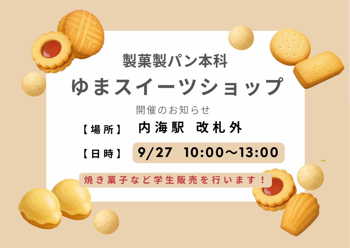 9月27日(土)に名鉄内海駅にて出店する『ゆまスイーツショップ』をご紹介いたします!